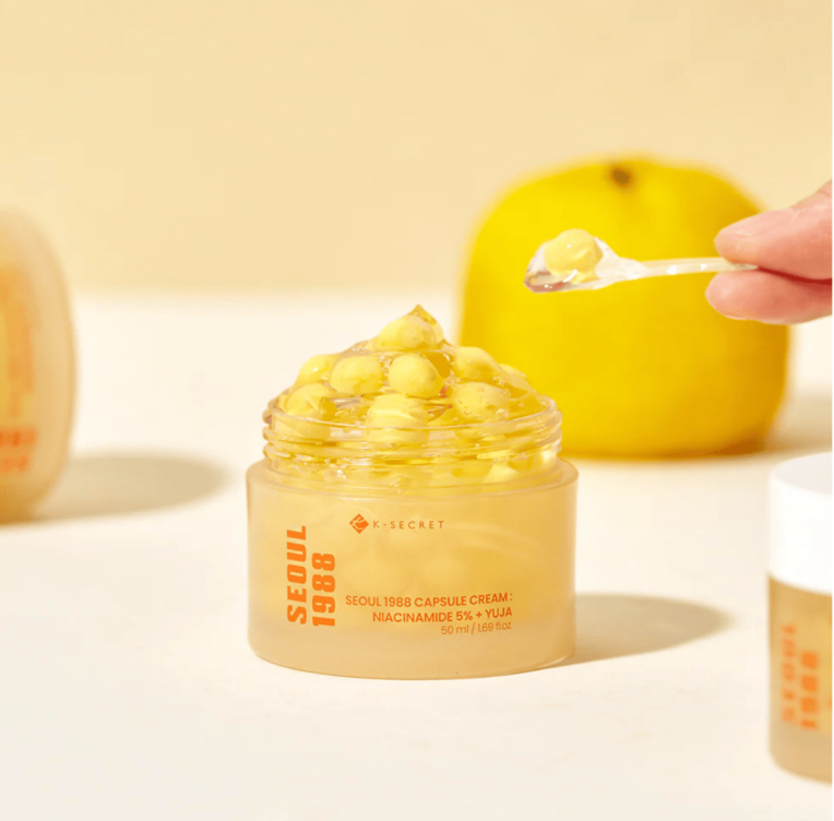 SEOUL 1988 Capsule Cream to nawilżająco-rozświetlający krem kapsułkowy przeznaczony do codziennej pielęgnacji skóry matowej, suchej i z nierównym kolorytem. Formuła łączy 5% niacynamidu z olejkiem yuzu (yuja) oraz bogatą bazą nawilżającą, aby jednocześnie poprawiać wygląd kolorytu, wygładzać strukturę skóry i dostarczać jej długotrwałego nawilżenia. Krem wykorzystuje formułę kapsułkowo-żelową, w której skoncentrowane kapsułki odżywcze łączą się z lekkim żelem podczas aplikacji.Pozwala to dopasować proporcje produktu do aktualnych potrzeb skóry – od lekkiego nawilżenia po bardziej odżywczą pielęgnację. Skóra po zastosowaniustaje sięwyraźnie bardziej miękka, wygładzona i naturalnie promienna.
